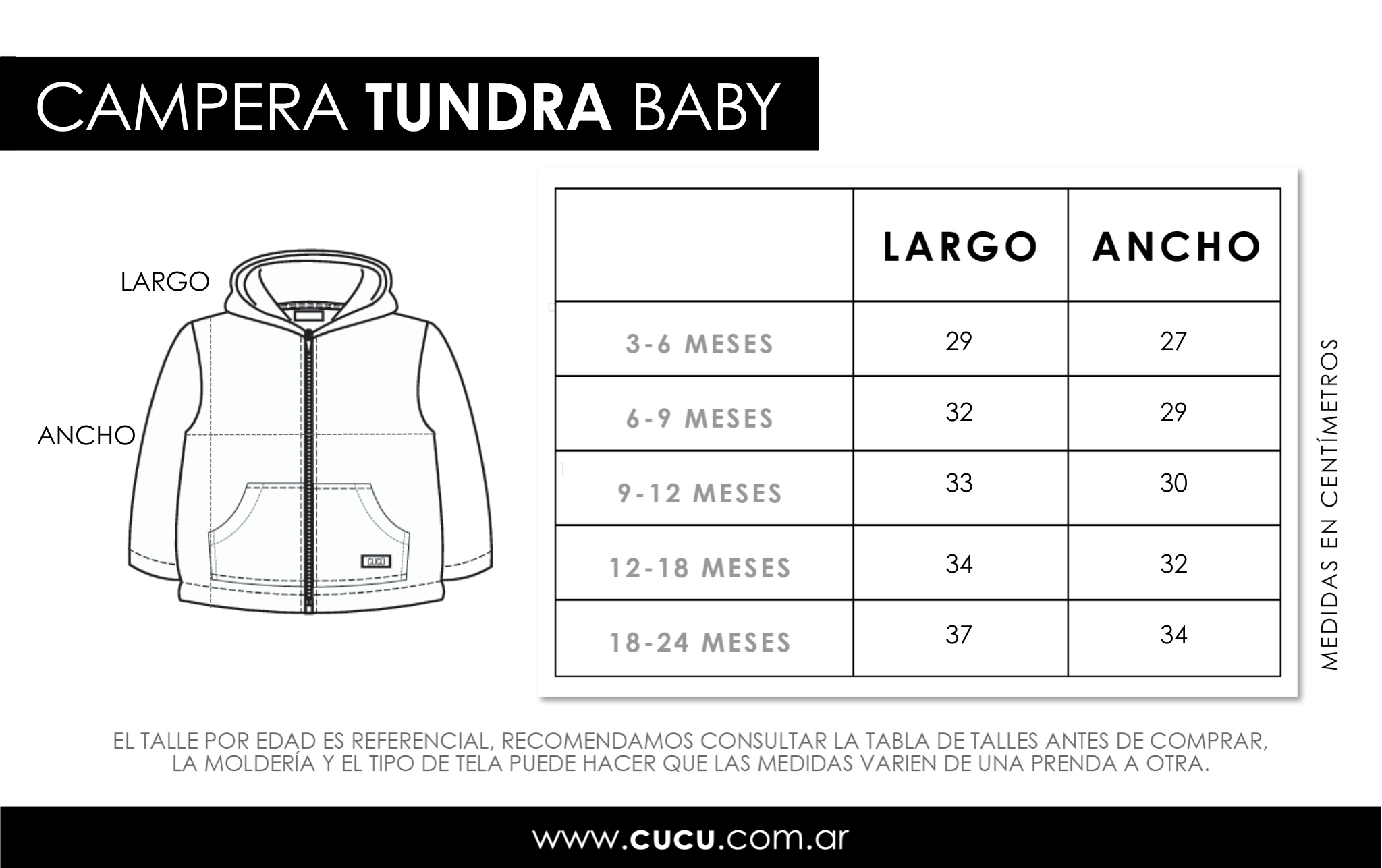 Disponible en talles desde 3 hasta 24 meses. ¡El abrigo que tu bebé necesita para estar protegido y cómodo!